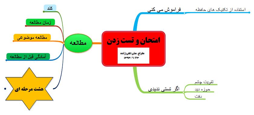 5-برای ترسیم نقشه درس می توان از دانش آموزان و دانشجویان استفاده کرد و مثلا یک کتابی که 20 تا درس دارد رو هر کدوم از دانش آموزان یا دانشجویان نقشه نقشه ذهنی اش رو ترسیم کنند و اساتید آنها را جمع آوری و اصلاح کنند و حتی به عنوان کمک درسی چاپ کنند.اگر چنین کاری در سطح کشور انام شود رشد مطالعه و علمی زیادی بوجود می آورد اگر همه را در یک سایت قرار دهیم و همه استفاده کنند.